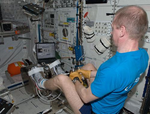 Frank De Winne onderhoud zijn conditie aan boord van het ISS door ondermeer te lopen